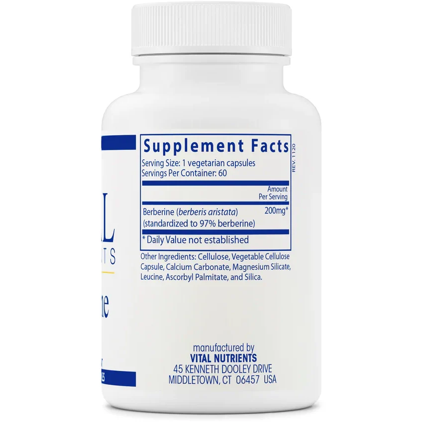 Berberine is a potent plant-derived alkaloid that offers a wide range of benefits.* Traditionally, Berberine been used to support regular and normal bowel function in healthy individuals.* Additionally, it may promote normal glucose and lipid metabolism.* Berberine helps maintain healthy blood sugar balance, and promotes cardiovascular health by helping to maintain cholesterol and triglyceride levels that are already in the normal range.* Berberine also supports activation of immune cells including macrophages, helping to maintain the body’s natural defenses.* Vital Nutrients offers Berberine as a single ingredient as well as in the combination immune formulations and Herbal Biotic.